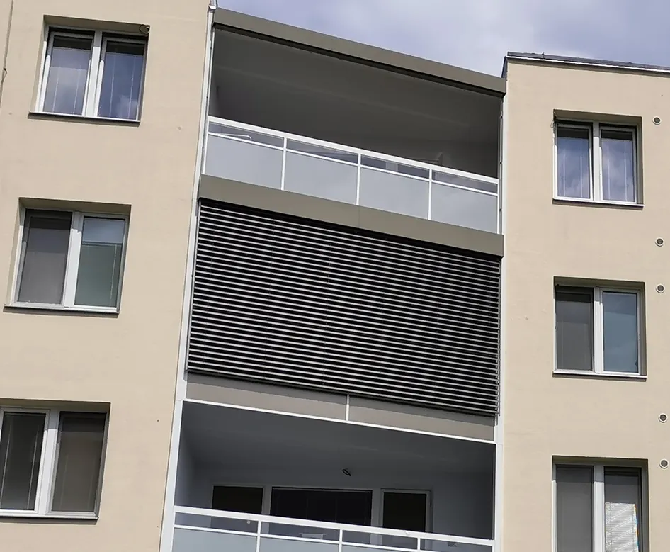 - Zabraňuje přehřátí prostoru lodžie či balkonu