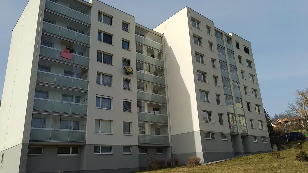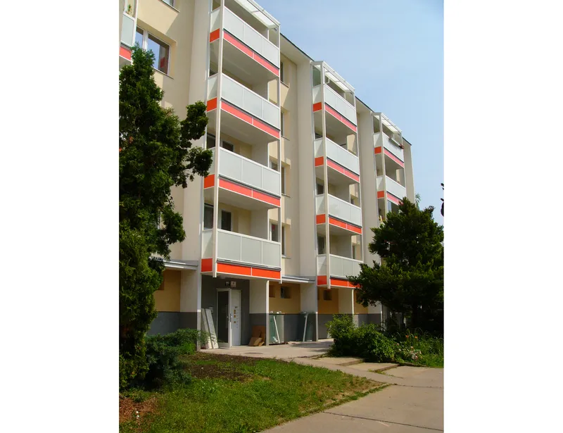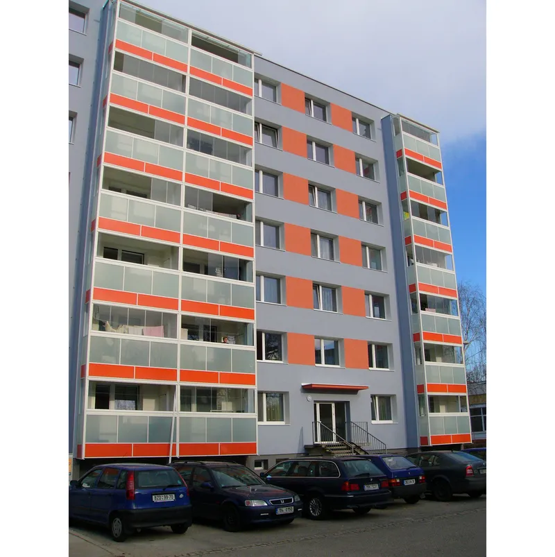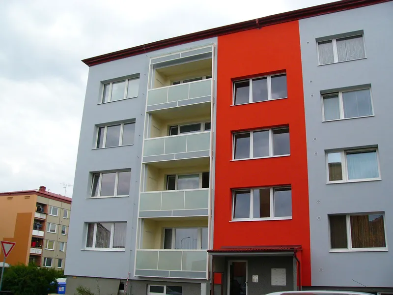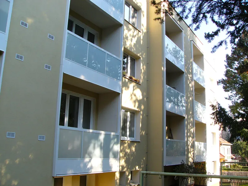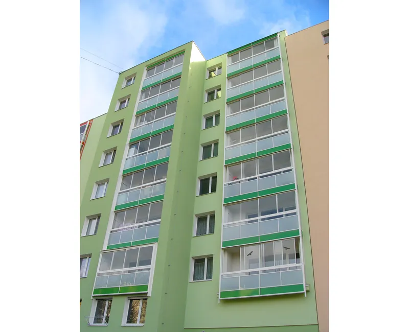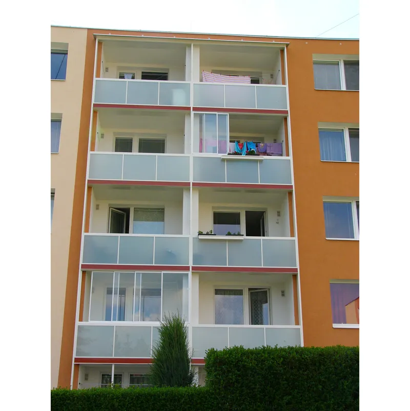 prodloužení balkonů o 600 mm, výměna zábradlí a zasklení prostoru